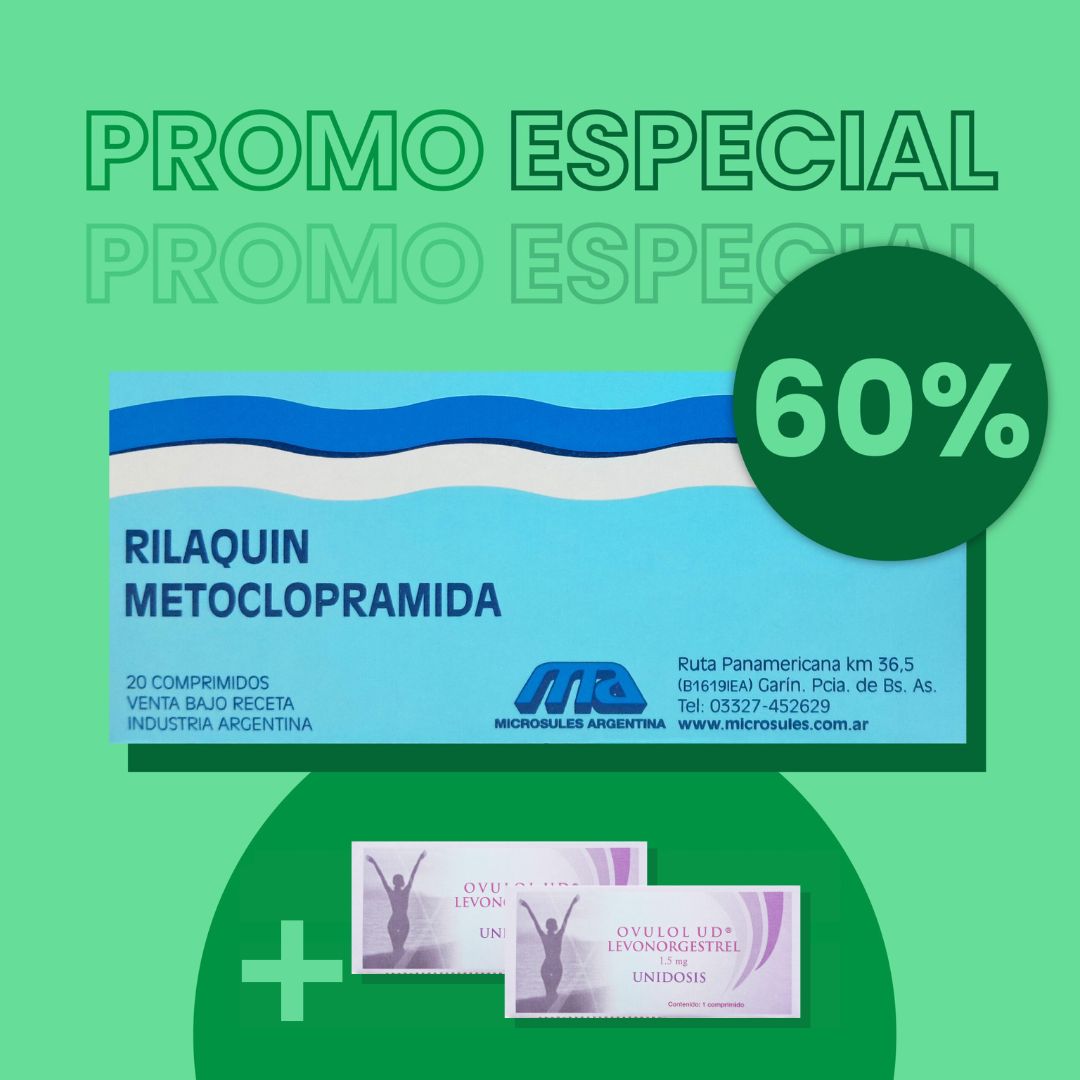 COMPRANDO 1 UNIDAD DE RILAQUIN 20comp CON UN 60% DE DESCUENTO TE BONIFICAMOS 2 OVULOL UD